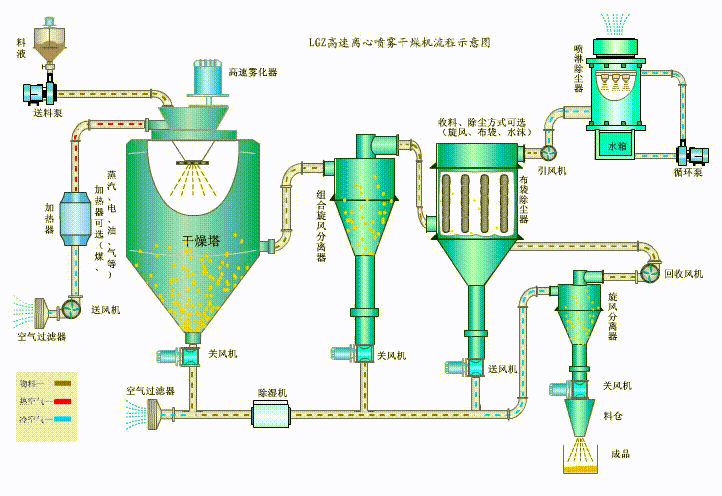 2、檢查離心噴霧干燥機各個機械部件的潤滑油狀況以及各個水、風、漿管閥口等是否處于所需位置;